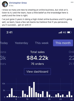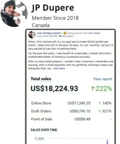 "I'm on my 2nd record month. $60,000 in sales. I was hesitant but I knew it made the best sense to dropship High-Ticket products that earn me hundreds in profit per sale vs. selling cheap crap from China. My family thanks you AJ! "